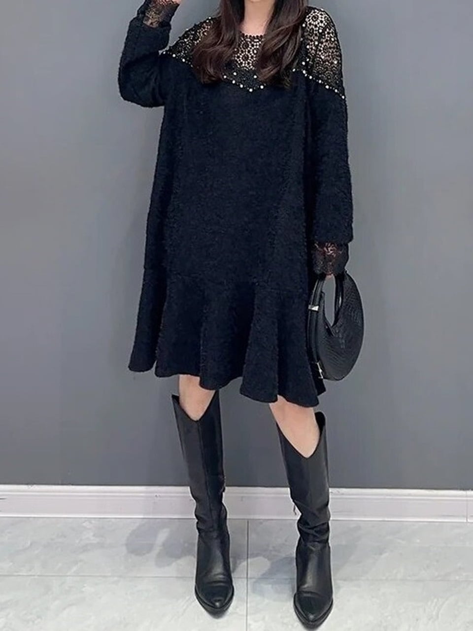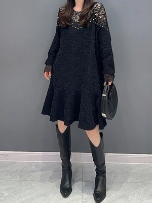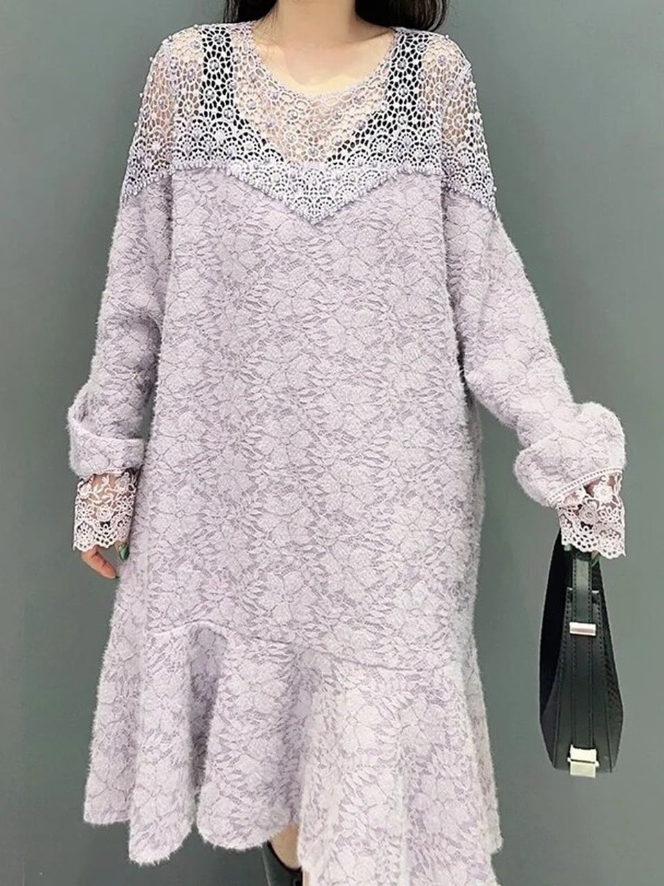 【LK0112】Brushed Lace A-line Midi Dress